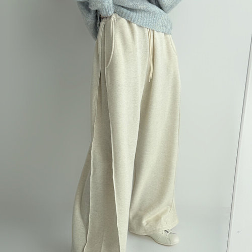 [옷자락]여성 스트리트 패션 기모 일자핏 절개 밴딩 바지