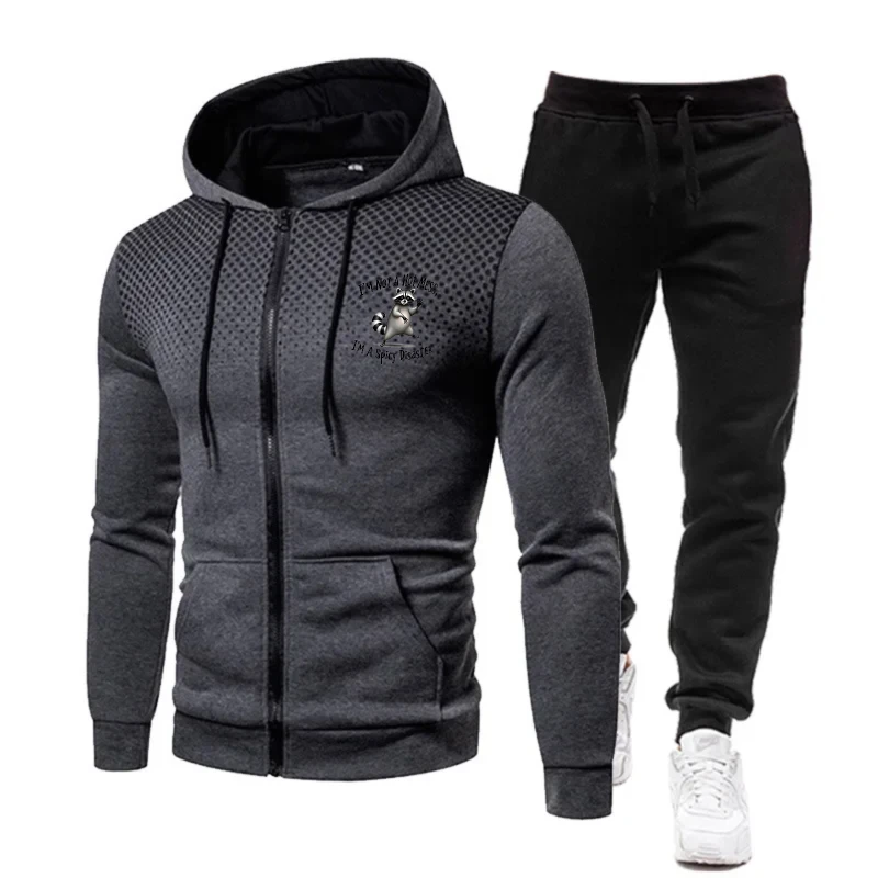 가을 겨울 남성 운동복 세트: 세련된 프린트 캐주얼 따뜻한 후드티 + 피트니스 조깅 스포츠 바지 투피스 세트
