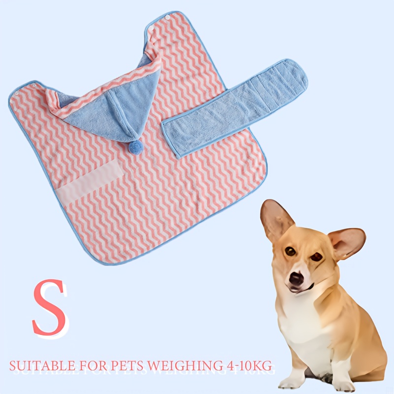 TEMU 빠른 건조 강아지 목욕 가운 - 초흡수, 조절 가능한 줄무늬 애완동물 타월, 대비 트림, 소프트 원단, 강아지 및 작은 개용, 빠른 건조 디자인, 강아지 목욕복, 유쾌한 개 디자인, 퀵드라이 패브릭