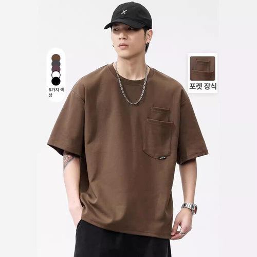 제로투올샵2 / 남성용 280g 이중 포켓 반팔티 커피색