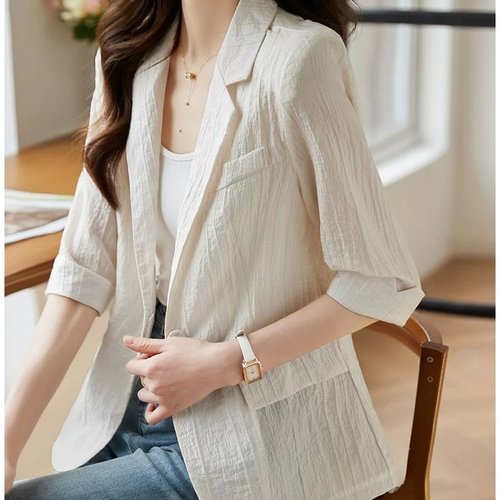 제로투올샵2 / 여성용 얇은 5부 소매 자켓 살구색 S