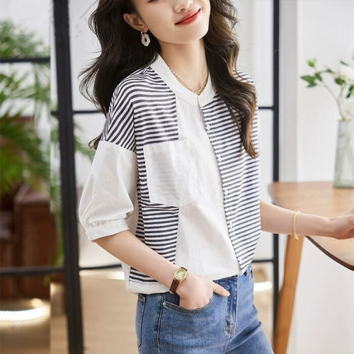 제로투올샵2 / 여성 스트라이프 블라우스 티 이미지색 S