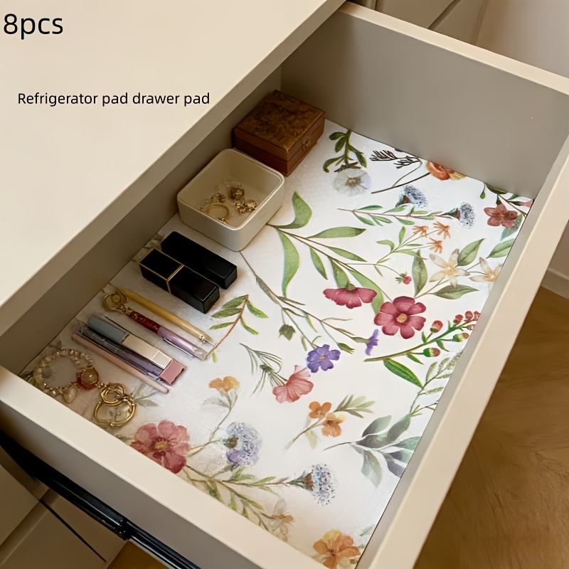 TEMU 4개/8개 두꺼운 꽃과 나비 패턴 냉장고 패드, EVA 소재, 미끄럼 방지 냉장고 패드 - 냉장고 안감, 미끄럼 방지 칸막이 & 서랍 패드, 냉동실, 주방용 - 세탁 가능, 간편한 세척, 스크래치 방지 패드|냉동고