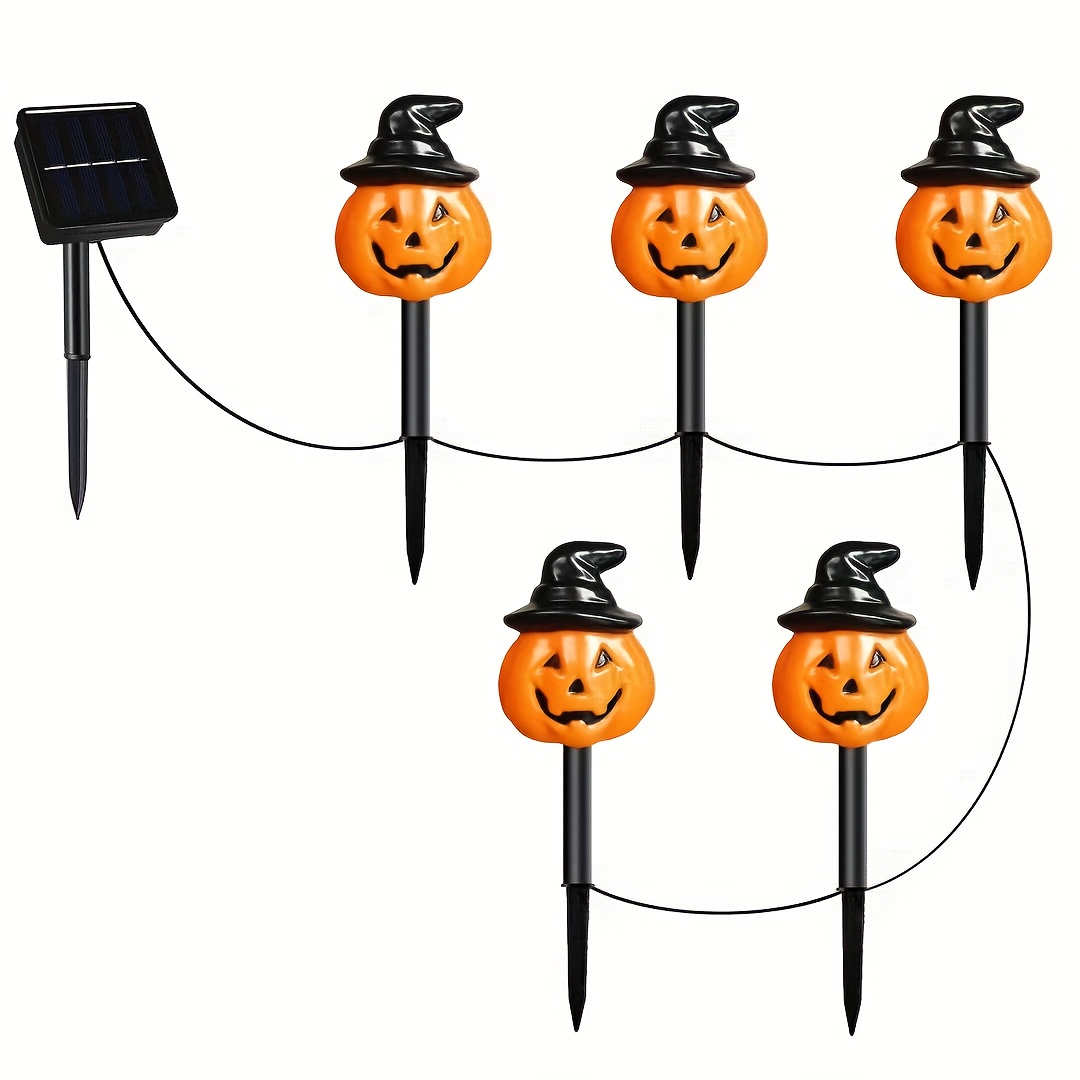 TEMU 태양광 호박 스테이크 조명 5개 세트, 마녀 모자 모양 묘지 트레일 야외 호러 할로윈 장식, 으스스한 마당 유령 집 장면 연출, 축제 디자인, 할로윈 호박 태양광 조명, 잔디밭을 위한 축제 할로윈 장식