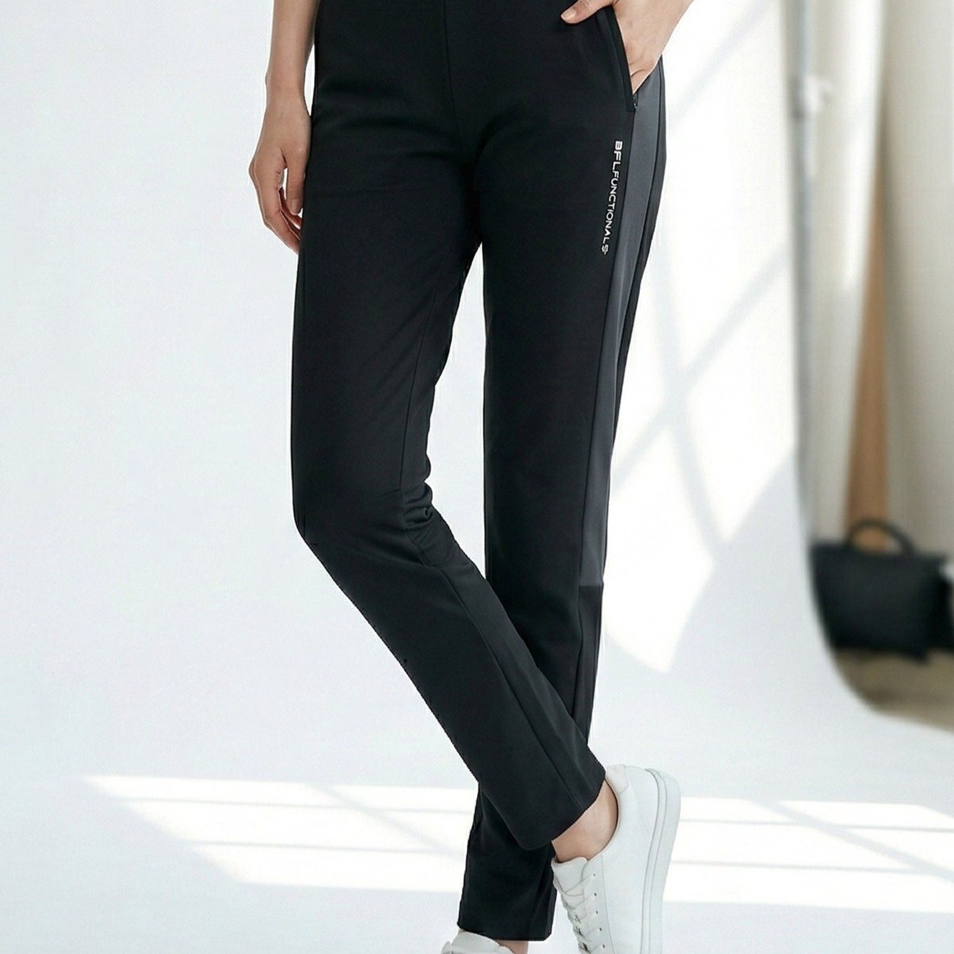 TEMU 여성 배색 라인 데일리 트레이닝 와이드 밴딩 바지 슬림핏 레깅스 (KP42LP014W)
