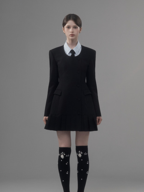 [마우솔레움] 젠 라운드 넥 플리티드 수트 자켓 드레스 - 블랙