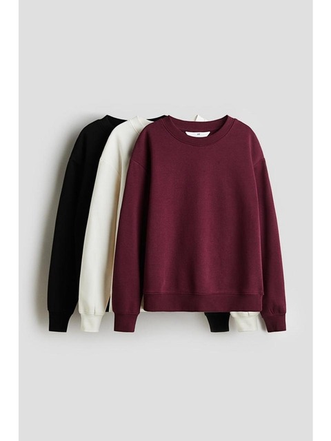 [에이치엔엠] 스웨트셔츠 3피스 세트 플럼 퍼플/화이트 1140466019