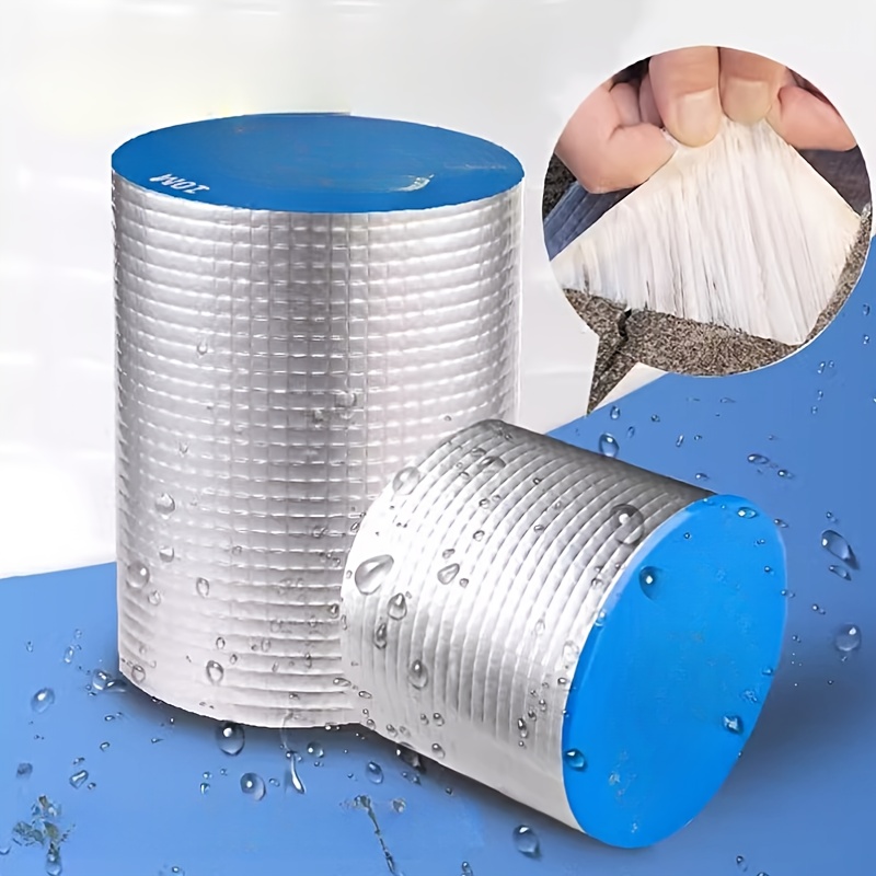 TEMU 고무 실링 테이프 롤, 알루미늄 포일 누수 복구 테이프, 창문 및 금속 지붕, 콘크리트 균열에 적합, 플라스틱 젤 형태, 배수 패치 테이프, 3.94인치 x 196.85인치