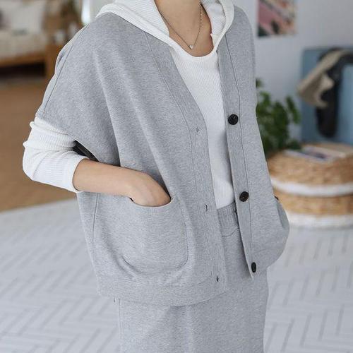 [신상오픈런]여성 브이넥 버튼 드롭숄더 두 포켓 박시 조끼