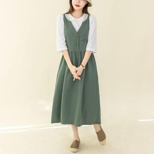 [디얼마미]로지 버튼 조끼 원피스 /마담 미시 중년 여성 빅사이즈 40대 50대