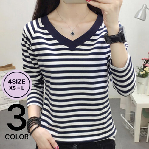 나바바 / 여성 캐주얼 단가라 브이넥 긴팔 티셔츠 NT986/ 3컬러/ 4사이즈