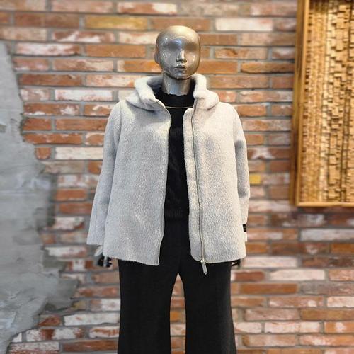[조이너스]여성 정장 24신상 알파카 모직 하프 코트 여우털100%