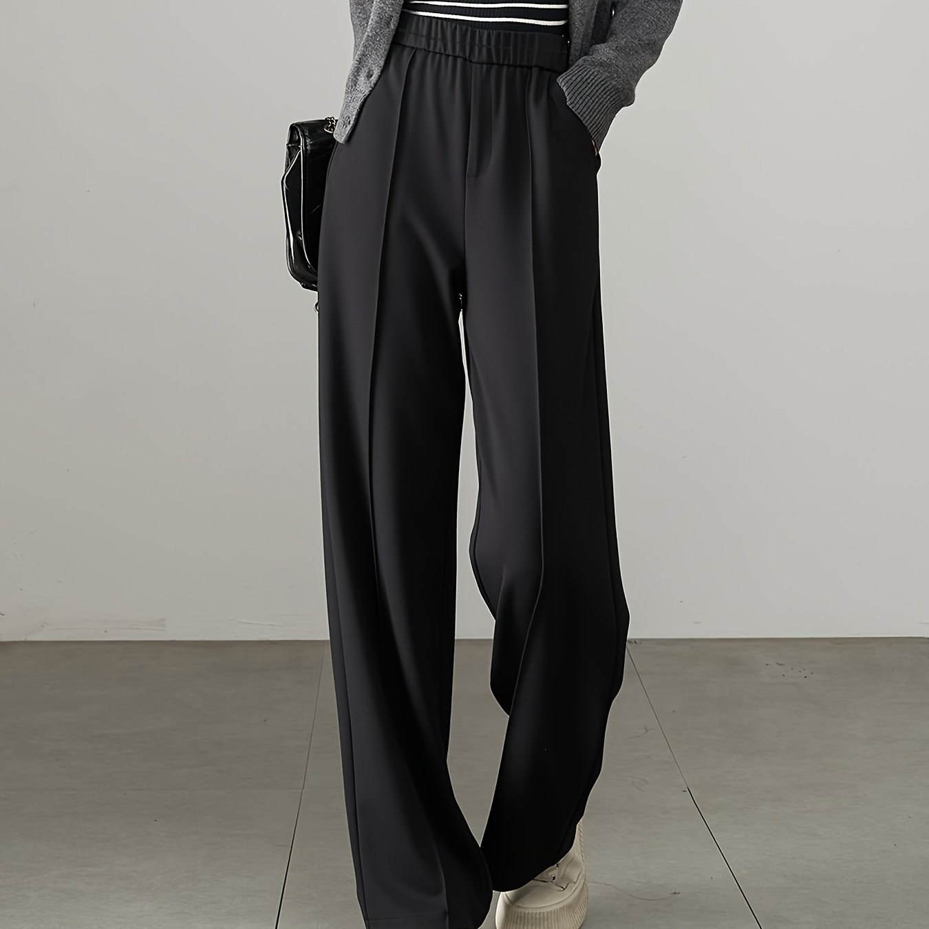 TEMU 여성용 캐주얼 레그 슈트 팬츠, 슬림핏의 다용도 와이드 레그 트라우저, 하이웨이스트, 루즈핏, 중앙 심장선과 탄성 허리 밴드가 특징이며 봄, 여름에 매력적인 외모를 연출합니다.