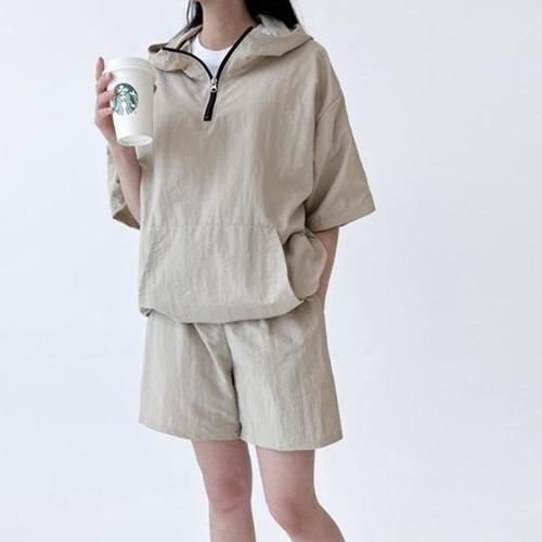 [엄지척]여성 후드 트레이닝 세트 밴딩 반팔 반바지 아노락_19556391_667501