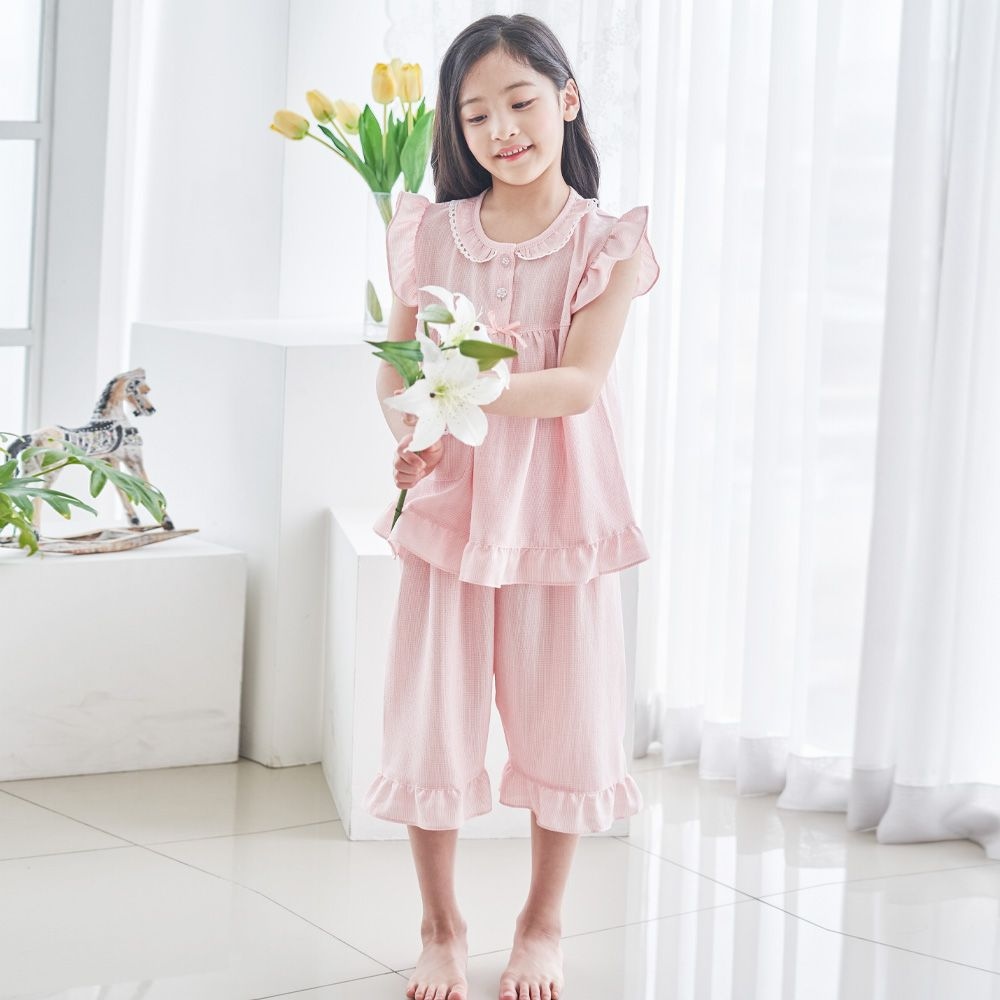 여아잠옷 린넨도트 반팔 파자마 실내복 유아동 주니어 상하세트