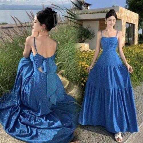 [신상오픈런]|CMO4602|닝배이 여행룩 주름디테일 여성 원피스 끈나시 동남아 블루_18155126_597559