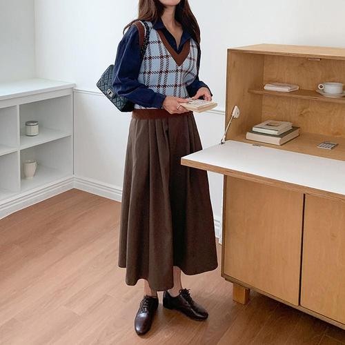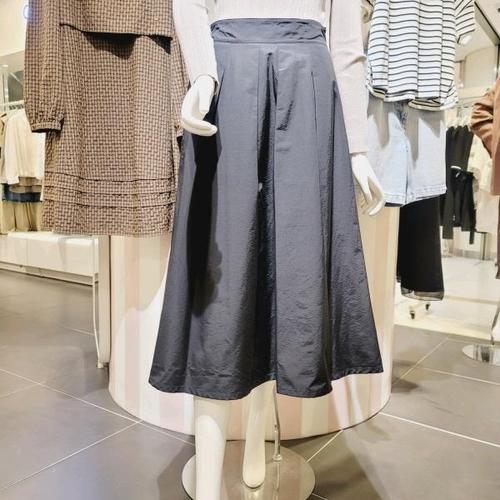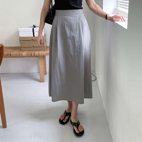 [쉬즈미](SRT-299)핀턱 주름 뒷밴딩 플레어 롱스커트 치마 A라인 가을