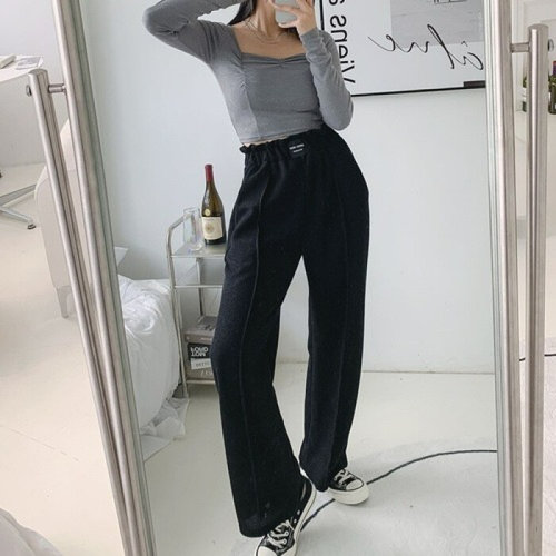 샵앤) 여성 허리밴드 데일리 넓은주름 통 니트 플리츠 팬츠 21DS-WPT-4909-차콜