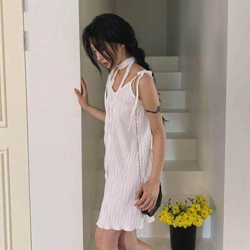 [엄지척]여성 시원한 어깨 리폰 포인트 허리밴딩 주름 원피스_19912998_667501