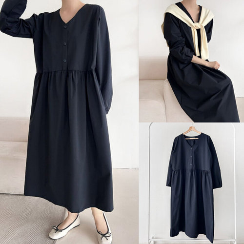 겨울원피스 OPS 홈웨어 슬림라인 어깨 포인트 하체 커버 주름 롱원피스