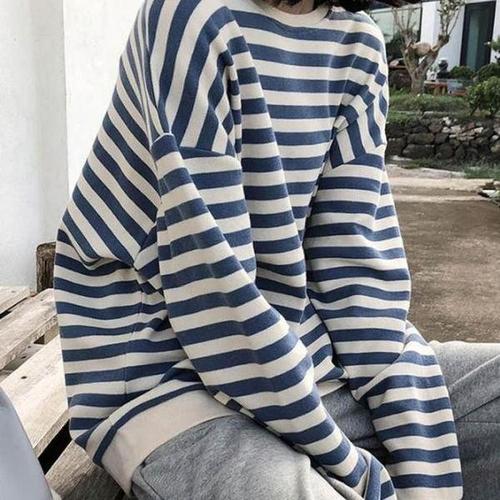 [셀러허브_여성트랜드패션]Rly 여자 캐주얼티 스트라이프 줄무늬 간절기맨투맨