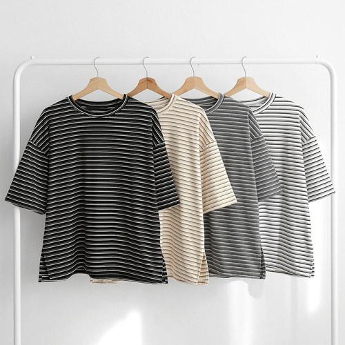 [에이치플러스몰]여성 루즈핏 스트라이프티 여성빅사이즈티 복고