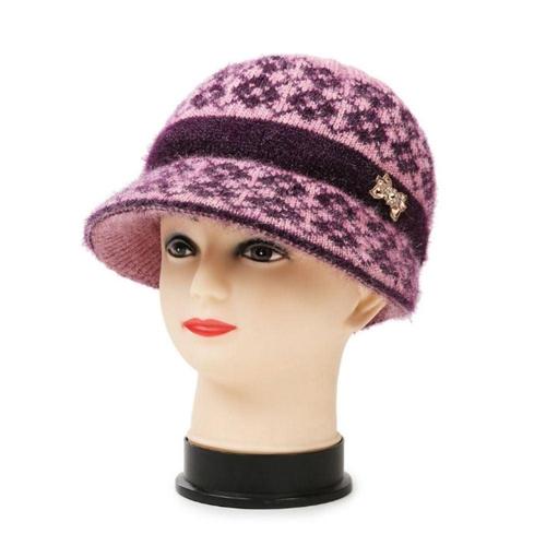 중년 여성 마름모패턴 할머니 방한모자 리본 니트비니 WFFJJ3S