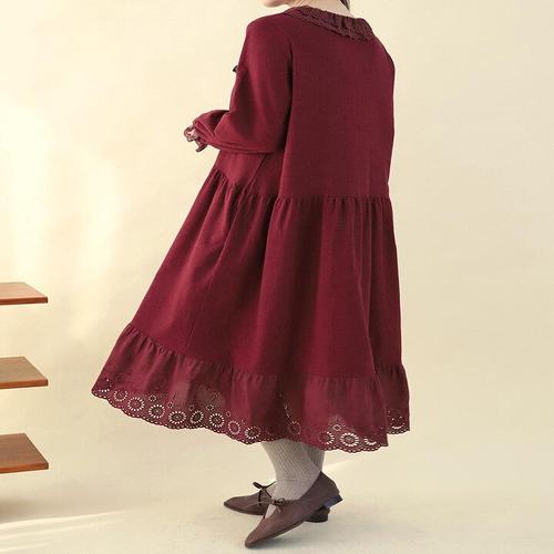 드리다 여자 가을 겨울 카라 플리츠 A라인 빅사이즈 플레어 원피스 40-50대 미시 중년 엄마옷 하객 상견례