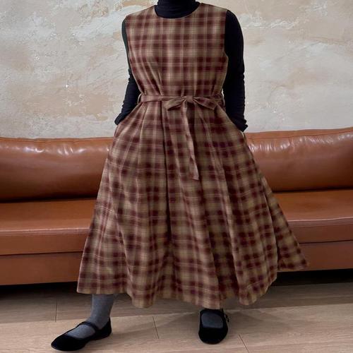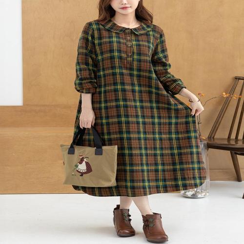 100kg까지 빅사이즈 여성 하프 체크 클래식 배색 우아한 중년여성 원피스 가을 편한 폼폼 입체 젊어 보이는 후드 스트링 주머니있는 오버핏 스판 통기성 심플 5xl 6xl 스커트