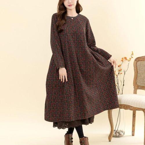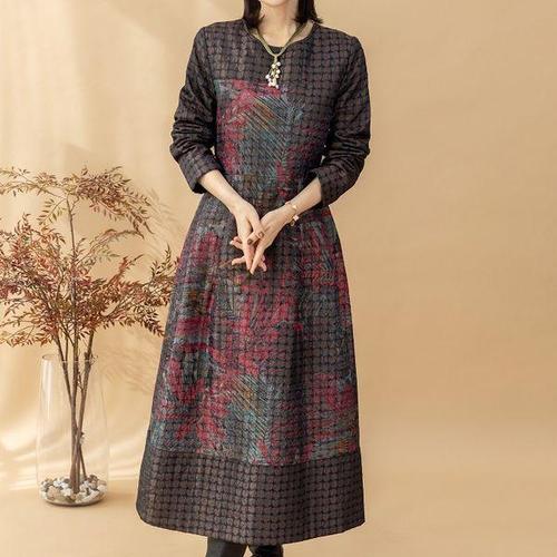 중년 여성 긴팔 원피스 루즈핏 고급스러운 엄마 원피스 기질 하객룩 롱 원피스 CY