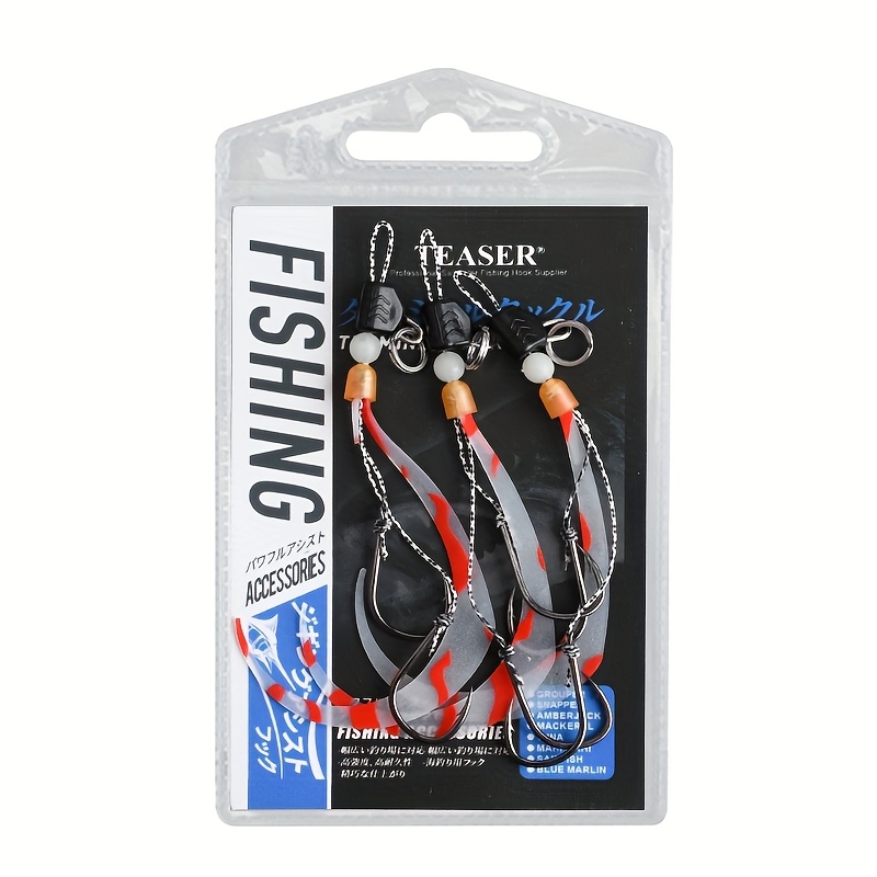 TEMU 3개 세트 수박머리 염증월후크 수염형 남성용 바이오닉스트림러 글로우펄블랙다이아몬드더블훅진짜농어고등어루어 with Assist