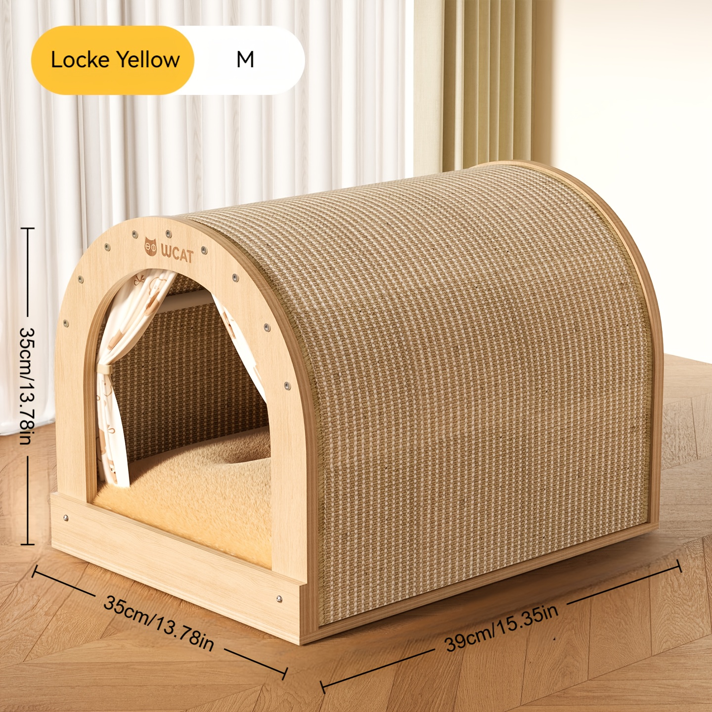 TEMU 웨스트 문스 아크형 고양이 침대 - 사계절용 하우스 침대, 사이잘 스크래치 보드 포함, 스크래치 포스트 & 포근한 침대, 내구성 있는 실내 고양이 장난감, 귀여운 디자인, 코너 공간에 적합 (조립 필요)