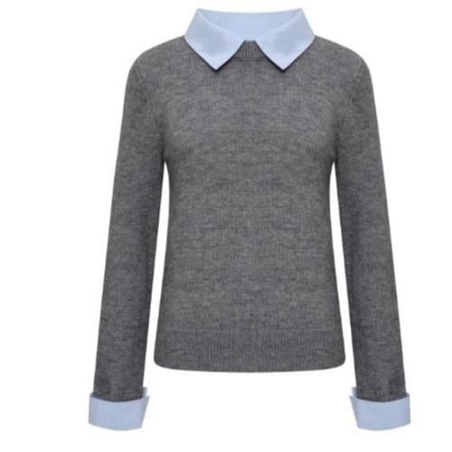 [JJ JIGOTT]셔츠 칼라 배색 풀오버 니트
