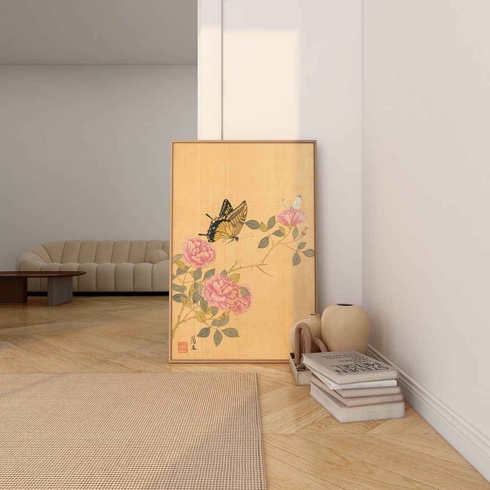 한국화 민화 풍속화 인테리어 포스터 액자 46종/21_신명연 장미와 나비