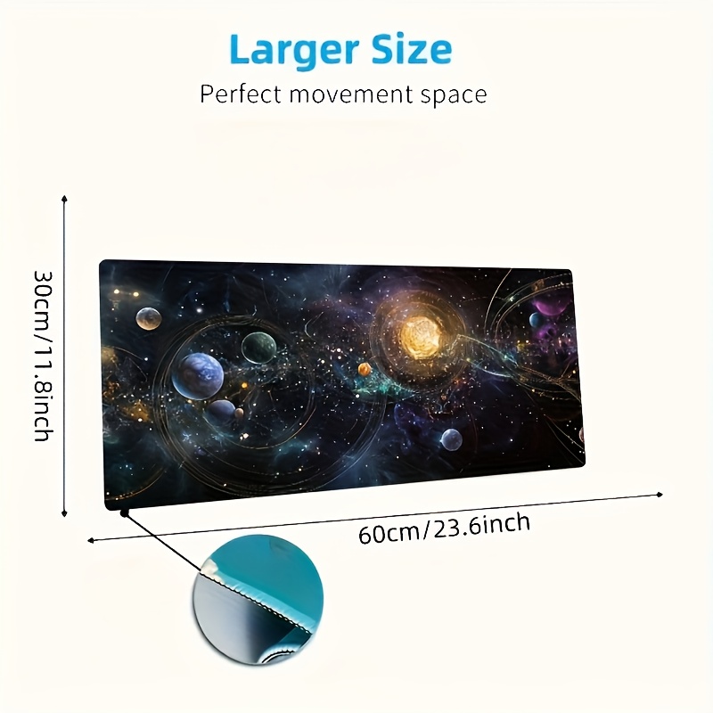 TEMU 아티스틱 디자인 갤럭시 마우스 패드 - 생동감 넘치는 태양계와 우주 패턴, 폴리에스터 소재, 사무실, 게이밍 또는 생일 선물에 완벽, 직사각형 디자인, 작업 공간 또는 게이밍 세팅에 이상적, 데스크탑 마우스 패드