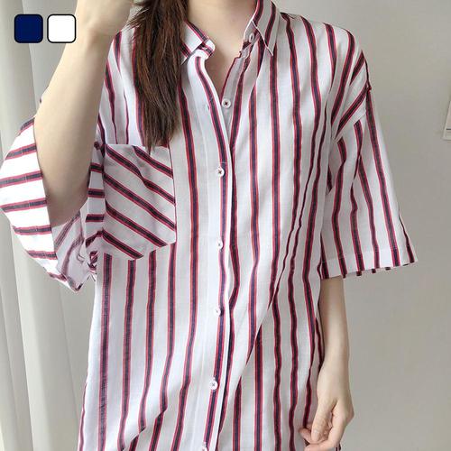 [피커]반팔셔츠 스트라이프 린넨셔츠 남방 블라우스 여름
