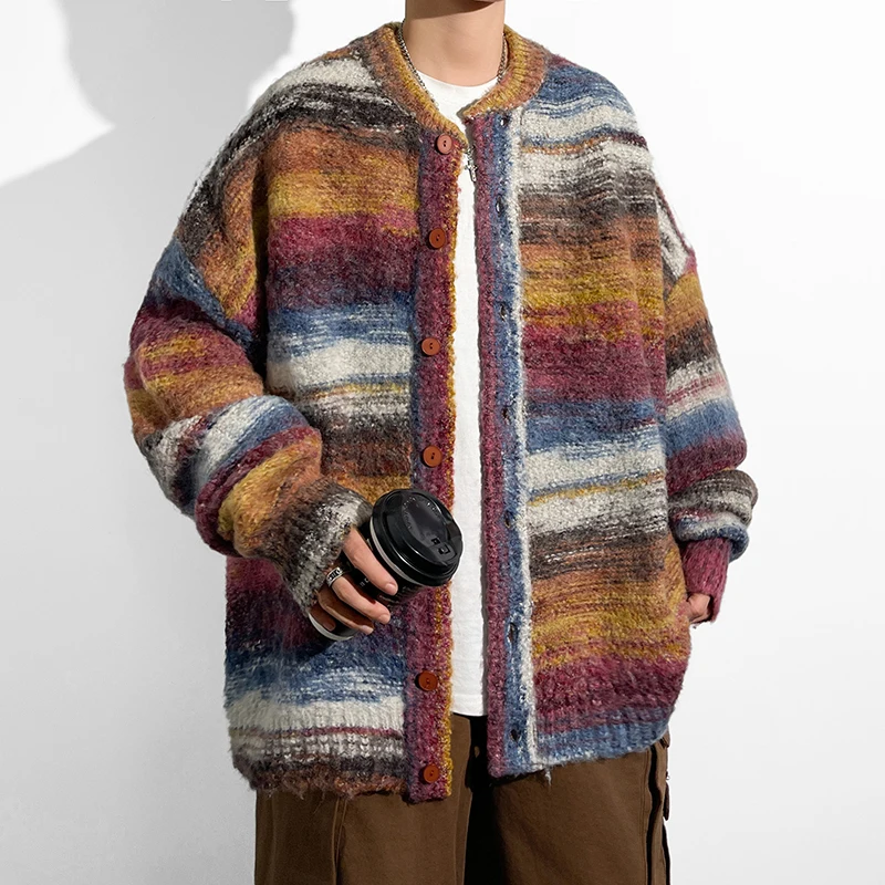니트 가을 봄 무지 남성 깔끔한 가디건 라운드넥