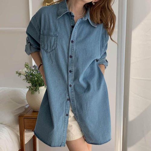 [셀럽하우스]숏 XOEX7927 데님원피스 미디 여자셔츠 오버핏 루즈핏 청남방