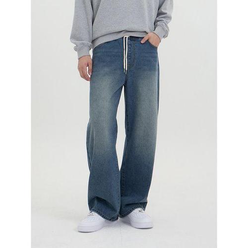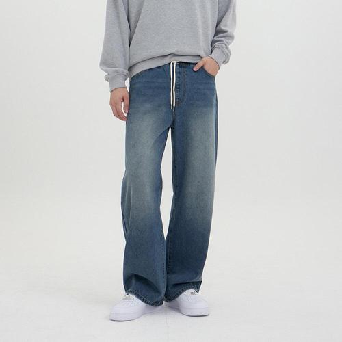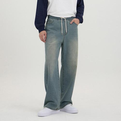 [진마니아]남여공용 컴포트 허리밴딩 와이드 데님 팬츠 (연청틴)