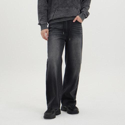 [진마니아]남여공용 컴포트 허리밴딩 와이드 데님 팬츠 (블랙)