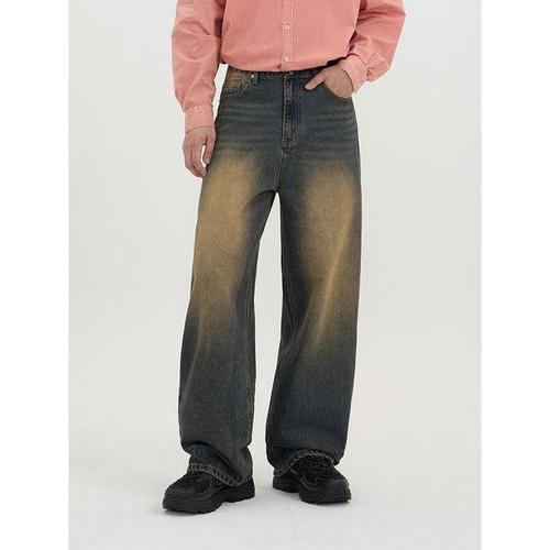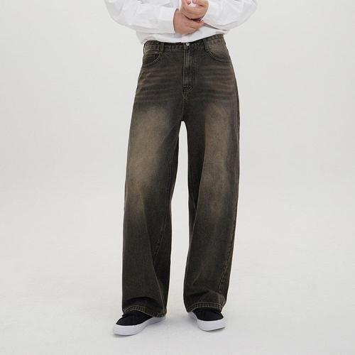[진마니아]남여공용 입체컷 백플랩 포켓 벌룬핏 와이드 데님 팬츠 (옐로우틴)
