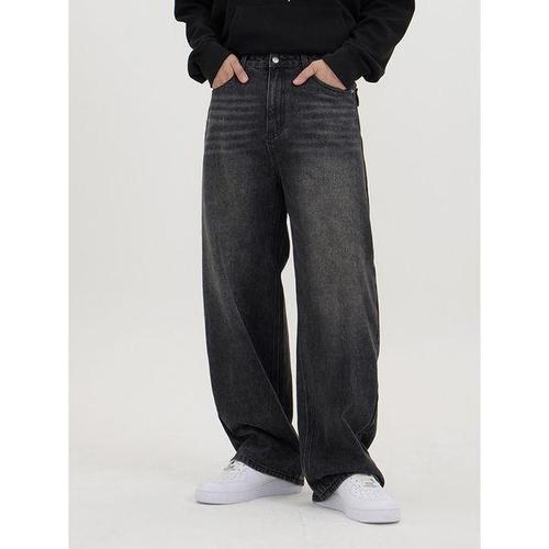 [진마니아]남여공용 에브리웨어 벌룬핏 와이드 데님 팬츠 (흑청틴)