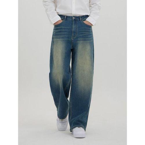 [진마니아]남여공용 에브리웨어 벌룬핏 와이드 데님 팬츠 (진청틴)