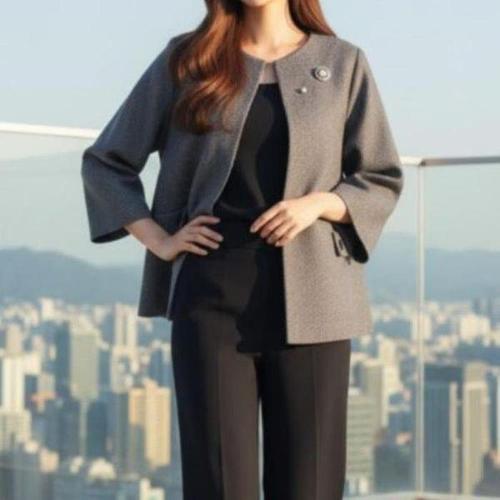 [다잇템]여성 오피스 셋업 9부 울 장식 모직 진주 재킷