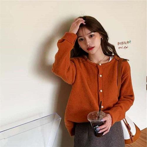 [셀럽하우스]여성 JIHI0561 베이직 진주알 단추 라운드넥 스타일 가디건