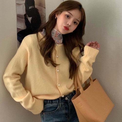 [셀럽하우스]데일리 YSLM5649 레귤러핏 진주알 단추 라운드넥 여성 가디건