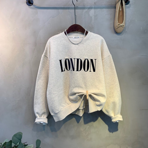 씨샵인더룸 / 런던 기모 진주 포인트 레터링 프린팅 라운드넥 긴팔 티셔츠 3color