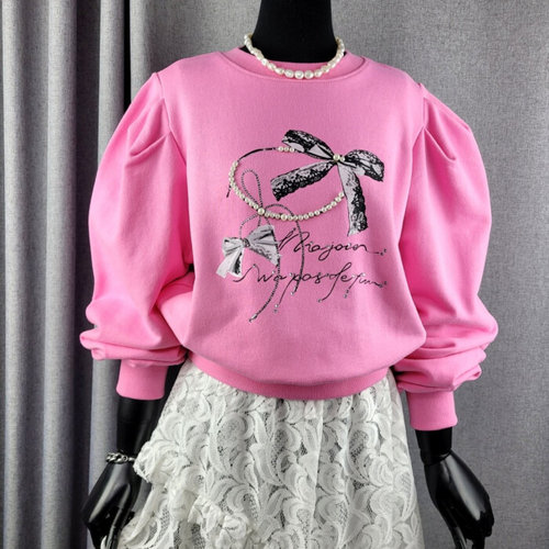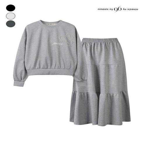 [나인식스뉴욕]진주 리본 맨투맨 티셔츠 앤 캉캉 스커트 셋업 (NPAST001M0)