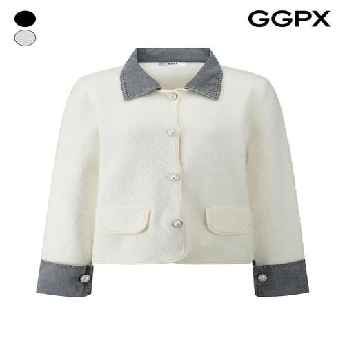 [GGPX]데님 카라 배색 진주 버튼 자켓 (GPAJK023F)