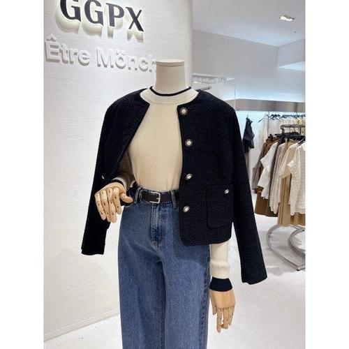 [오노마] ONM 트렌디 배색 진주버튼 크롭 자켓 세련된 트위드